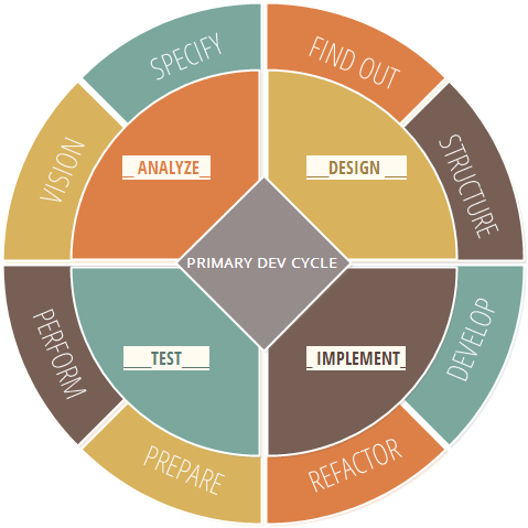 Modern approaches to software development focus on product or application lifecycles rather than development cycles, however the latter stays in central role, as efficient application management can only rely on properly developed software. The primary development cycle, in which Imprestige is specialized, consists of the four major steps of developing a software: